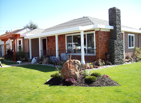 With the exterior, we added a 5" cedar shingle siding to the exterior wall areas that face the street sides and applied a natural clear stain. New Milgard windows replaced all the old ones around the house. We also added a new layer of stucco to even out the old walls. We overhauled and connected the entire exterior storm drainage system that surrounds the entire property, and applied stamped concrete for the house entry and porch areas to create that craftsman feel. The front yard received new landscaping work and the backyard a new deck and fence, which surrounds the complete rear of the house. All walkway entries received a new solar lighting system. With the foundation, we bolted it down to secure for any earthquakes that may occur. We finished the exterior with new coats of paint.