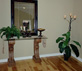 The formal dining room, the living room and hallways are installed with distressed hickory floors. We added stonework to the new fireplace. For the kitchen, we rebuilt and installed red birch hardwood floor, new cabinetry and a granite countertop. We rebuilt a sunroom in the back, which opens to a new deck, built with red wood. We provided landscaping for both front and back yards, added new concrete to the garage and built a new fence. We completed the renovation with custom paint for both interior and exterior.