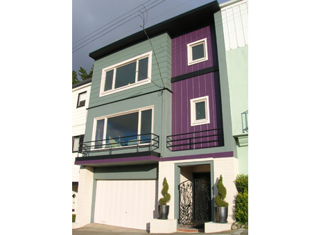 For this hilltop house, we power-washed the exterior, scraped peeling paint, and repaired wood damages as well as stucco damages. We treated the house with a full oil-based prime and finished with a tri-color paint scheme.