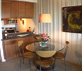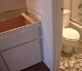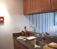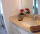 For this renovation, we gutted the entire 1970s studio condo, including the kitchen and the powder room. We rewired and upgraded the electrical system. The bathroom area received new plumbing and new Travertine floor tiles while a new granite countertop now graces the powder room.